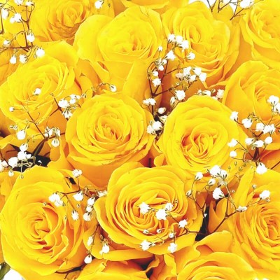 Composé de grandes roses jaunes GROS BOUTONS et de gypsophile
